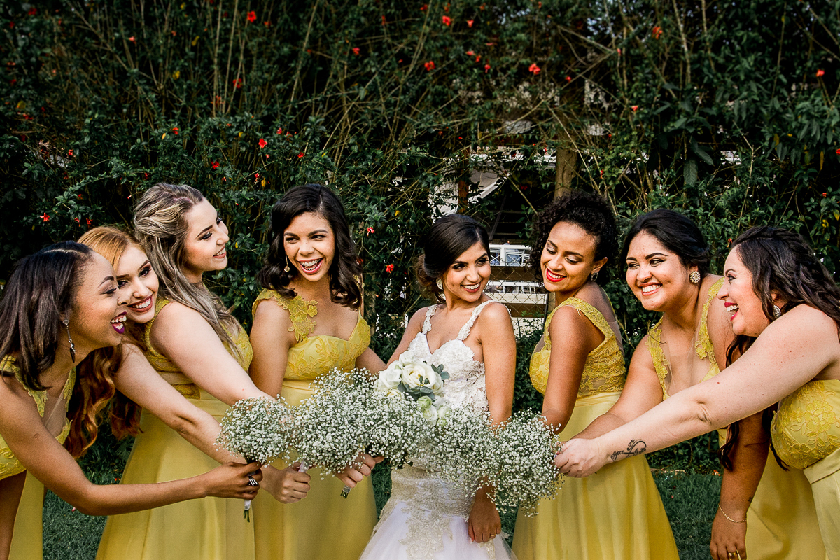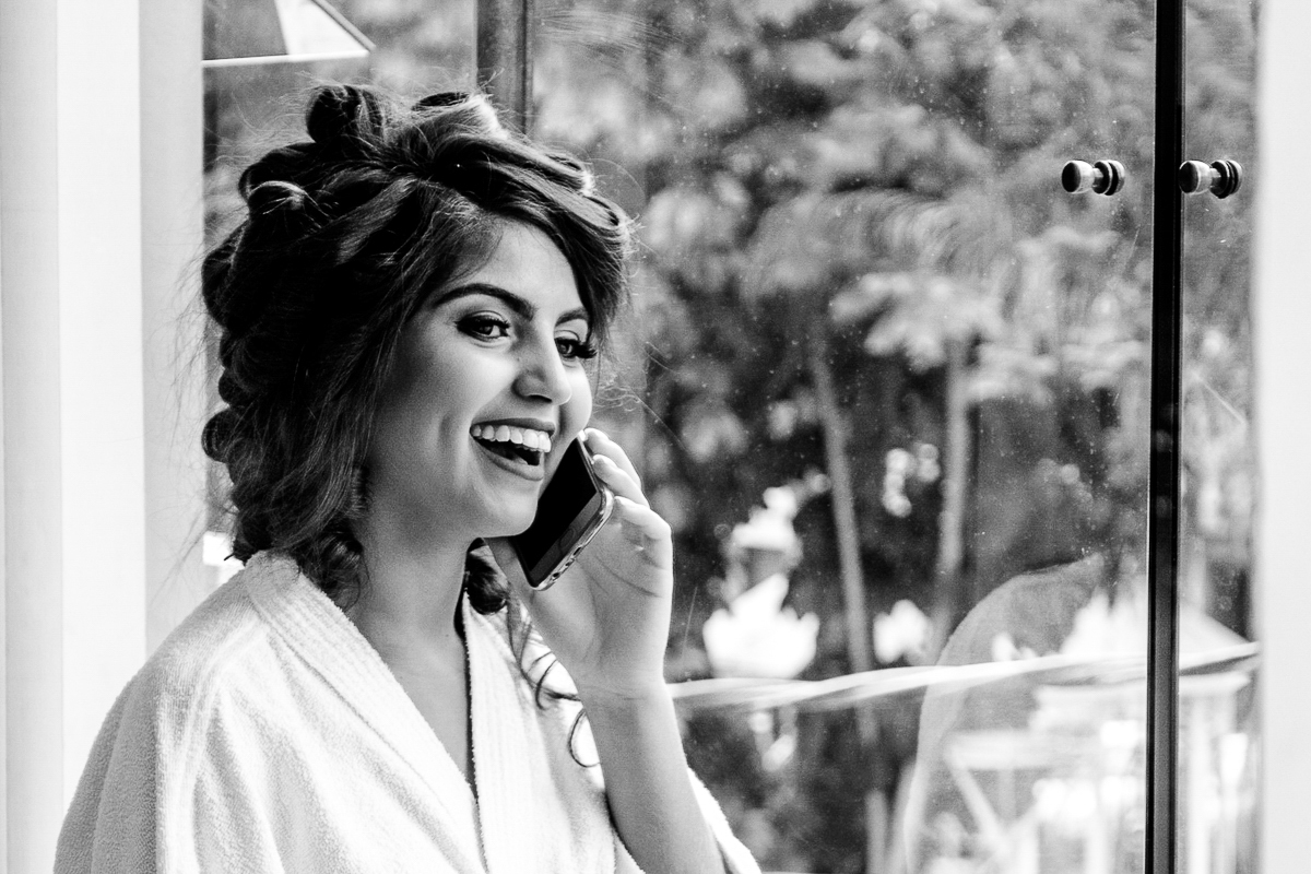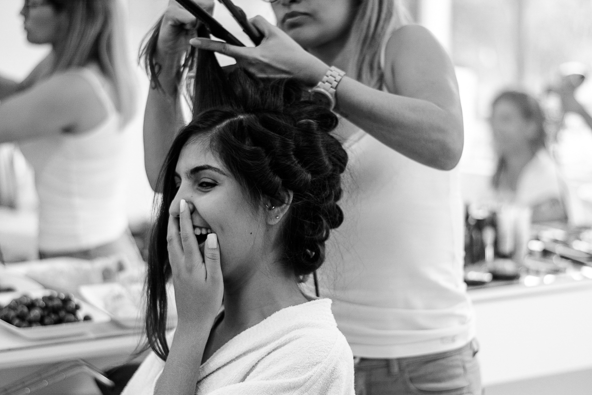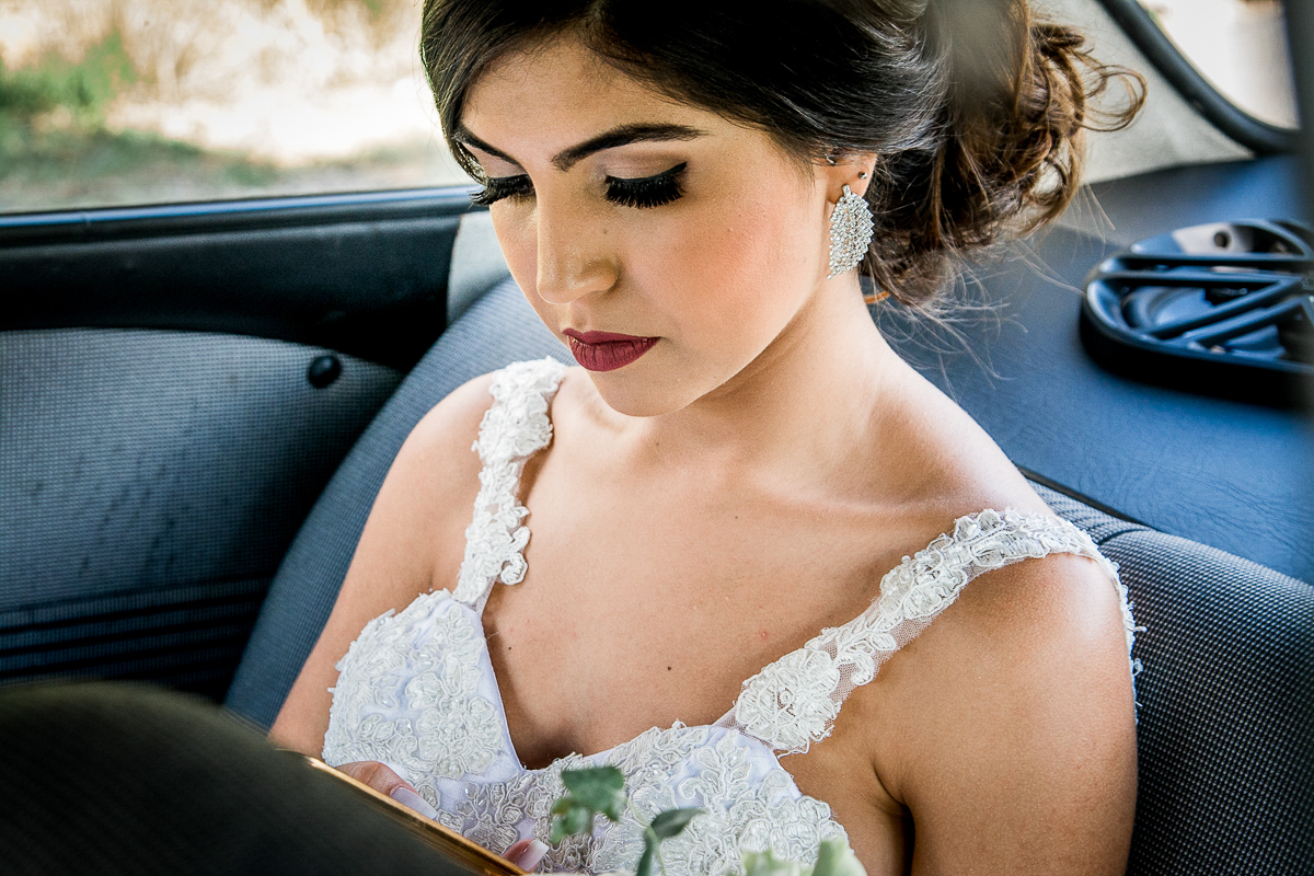 Dia de noiva plena, se arrumou tranquila e antecipadamente no salão, noiva pronta e sem atrasos, divertida e aproveitando cada minuto do seu momento com algumas amigas e madrinhas, e sempre de olho nos votos no celular pra não esquecer.