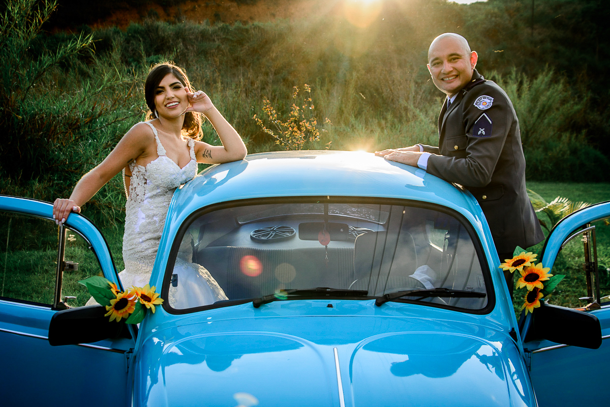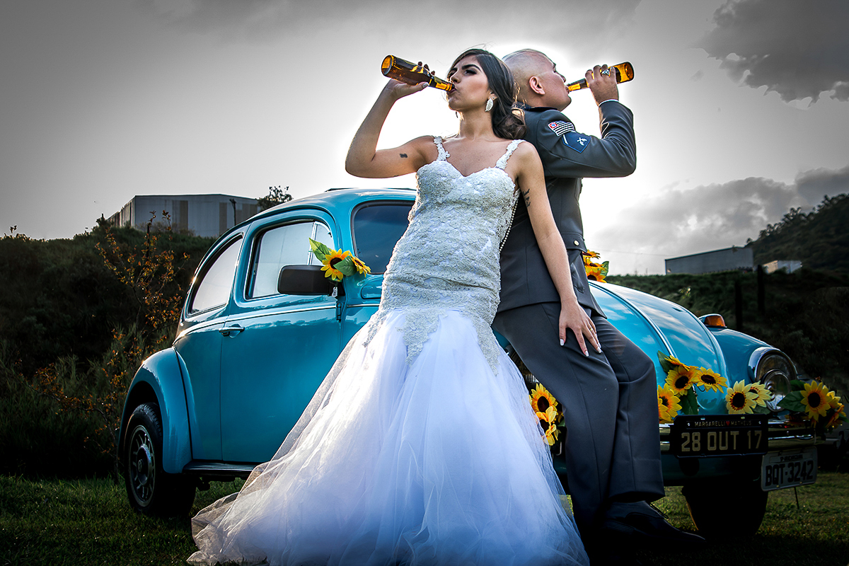 Nossas fotos começaram bem antes quando o ensaio foi totalmente na base da diversão. Em Capivari fomos até o parque fazer farra e correr pelos canaviais HAHA. As fotos ficaram incríveis e o álbum então, nem se fala! Massss o tal do Coronel, Buldog Frances do casal, resolveu fazer o material seu brinquedo e estraçalhar tudinho...Vixii..